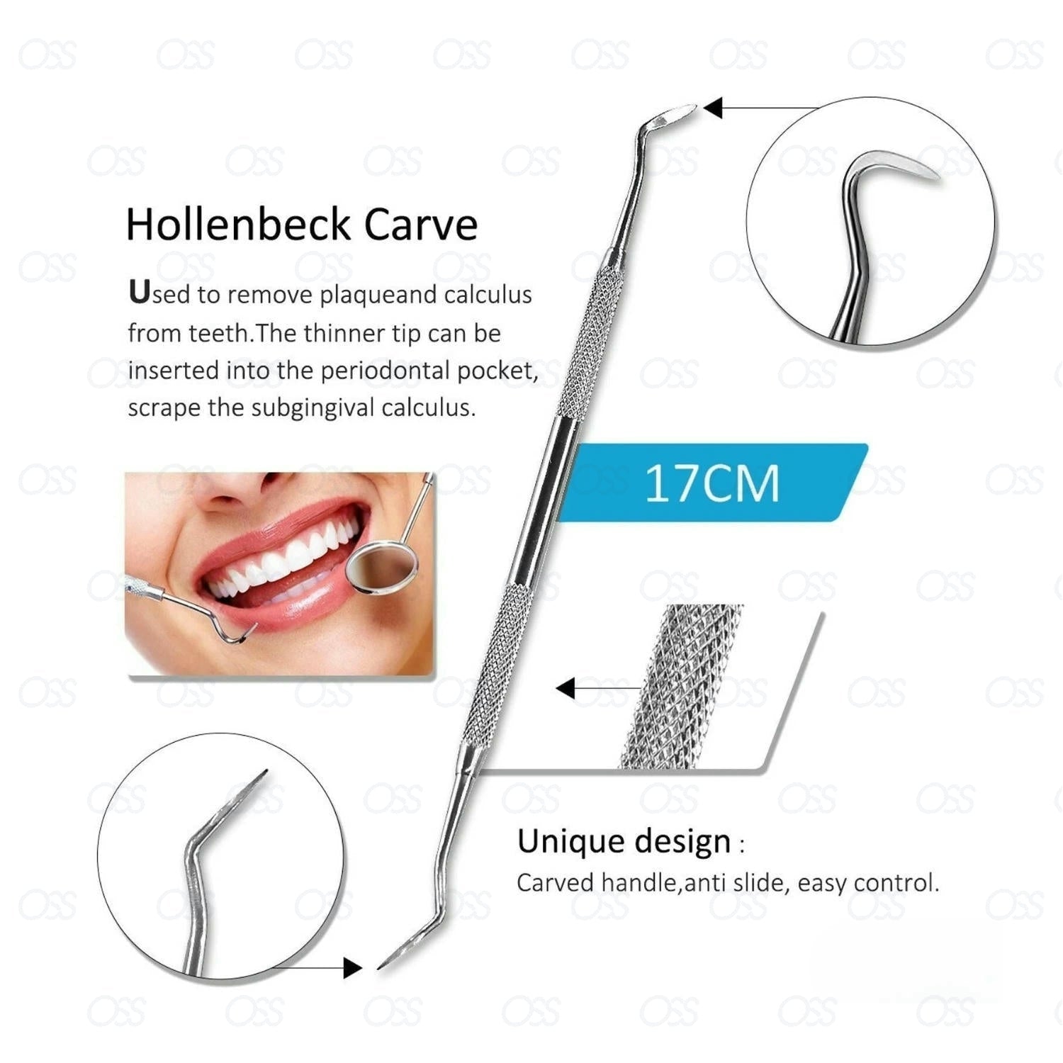 Includes: Dental Mirror, Probe, Sickle Scaler, Scraper, Protective Case