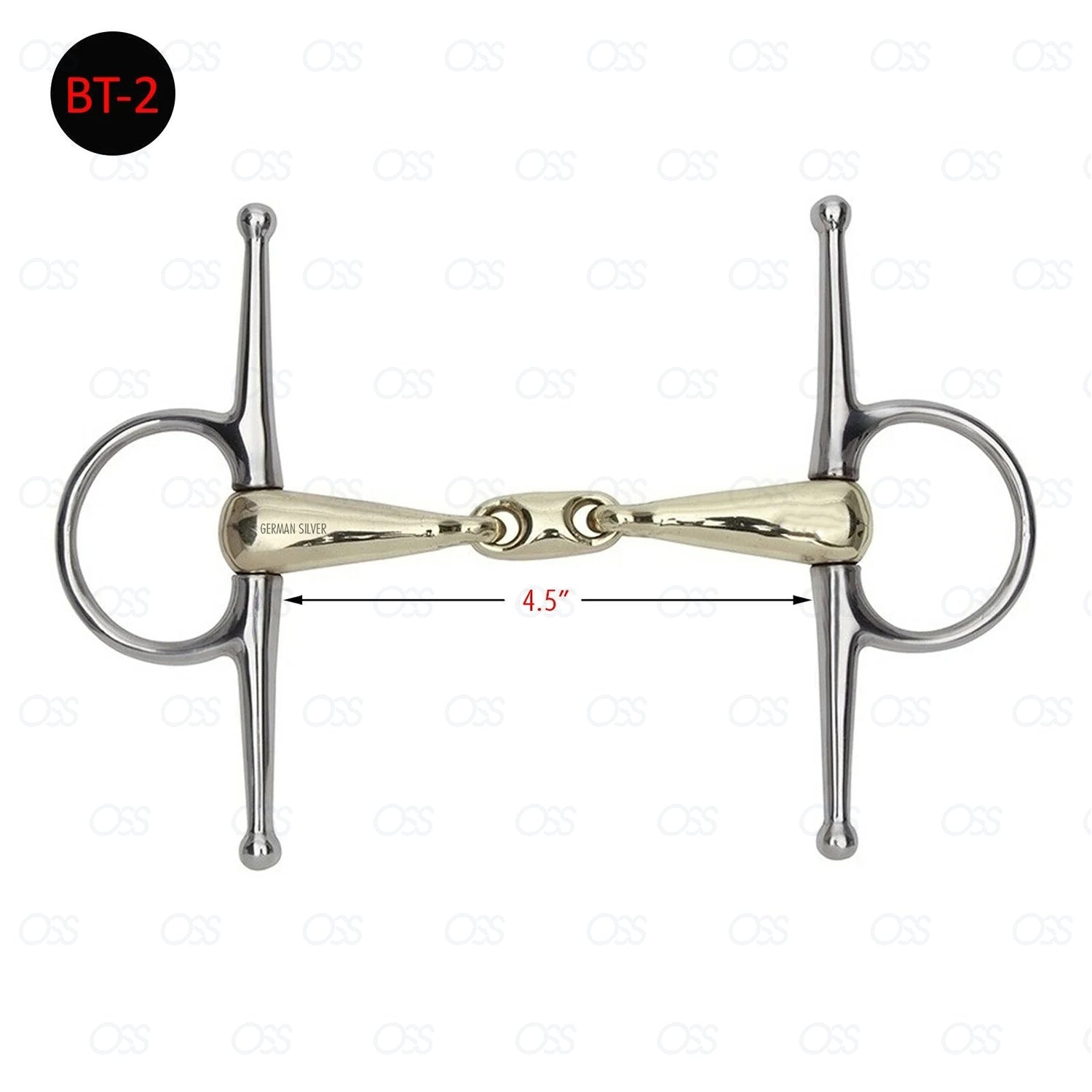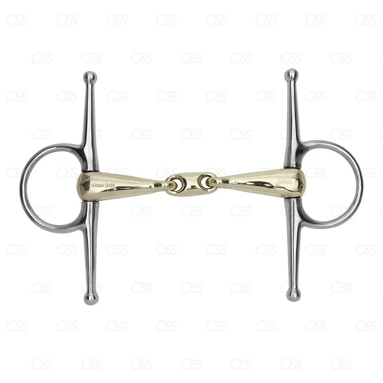 The Full Cheek Waterford Snaffle with German Silver and Copper Mix is designed to offer comfort and flexibility for the horse. The mouthpiece consists of a series of rounded links, similar to a chain, which allows the horse to manipulate the bit, promoting natural movement and swallowing.