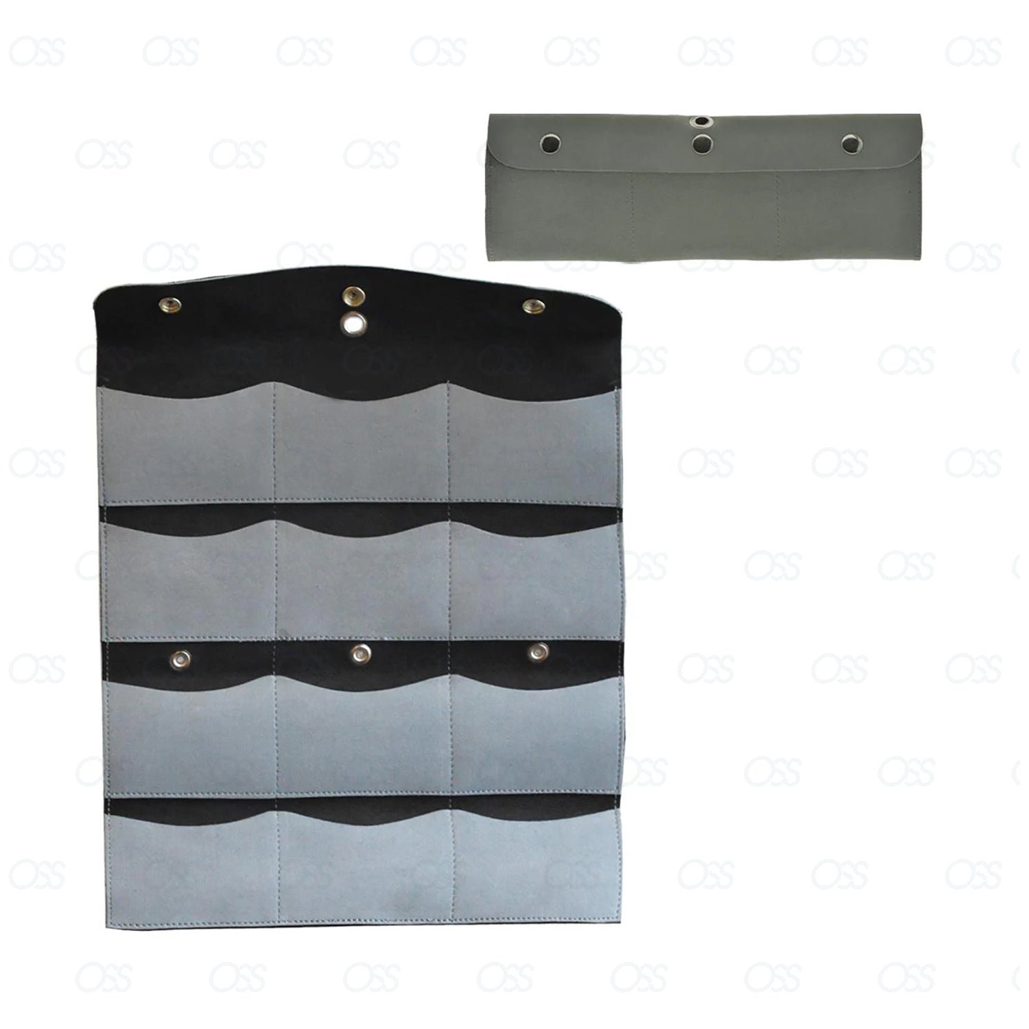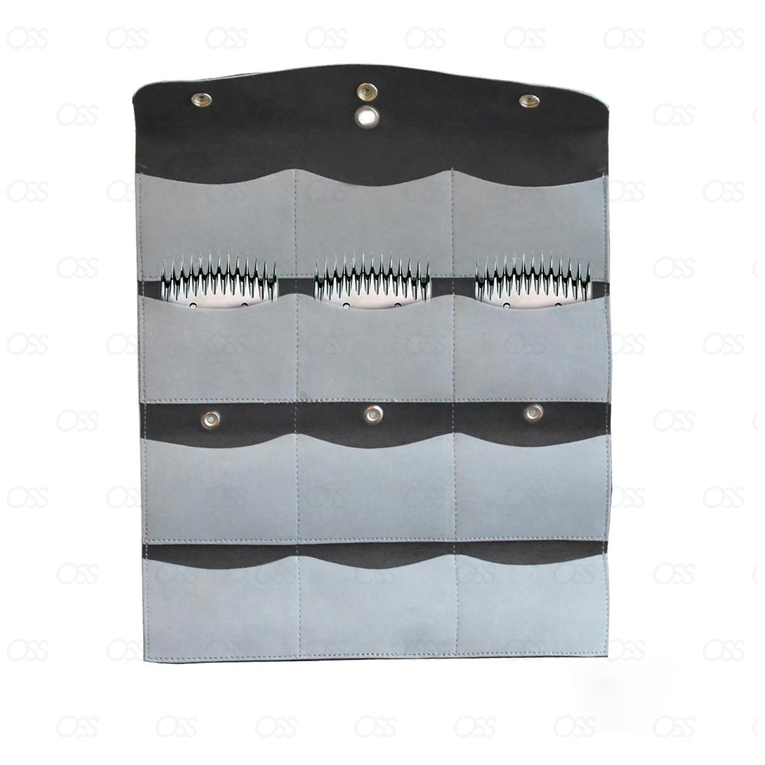 - 12 Pocket Leather Comb Pouch which holds up to 30 combs for safe storage and protection. Folds neatly for convenience with security. The colors of the comb pouch may vary.